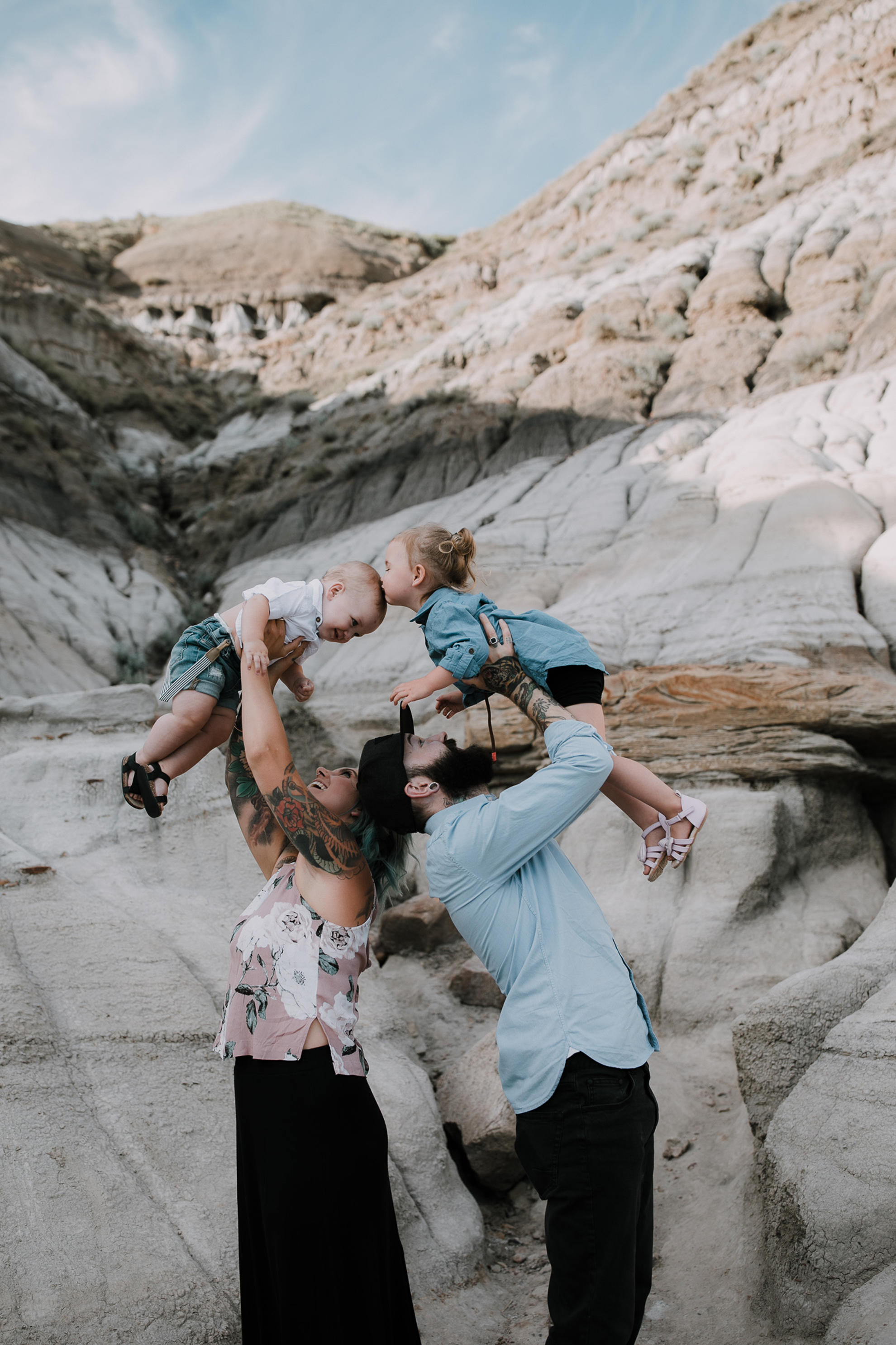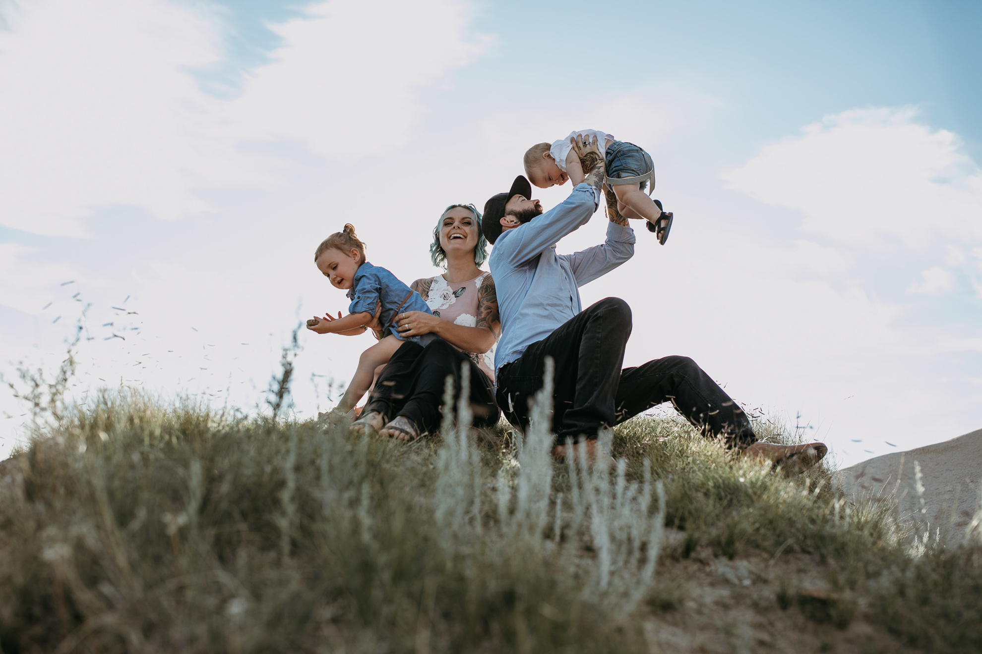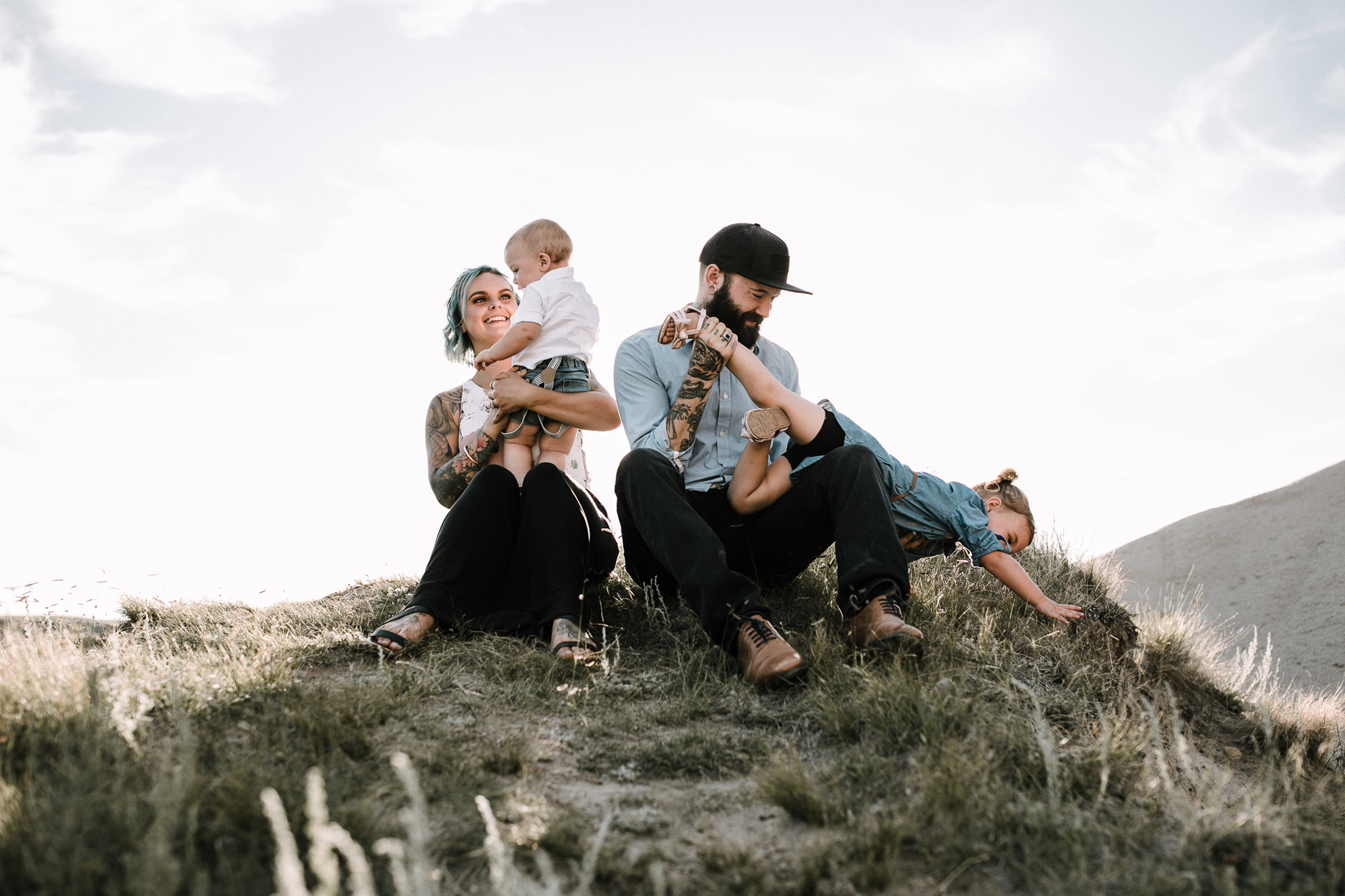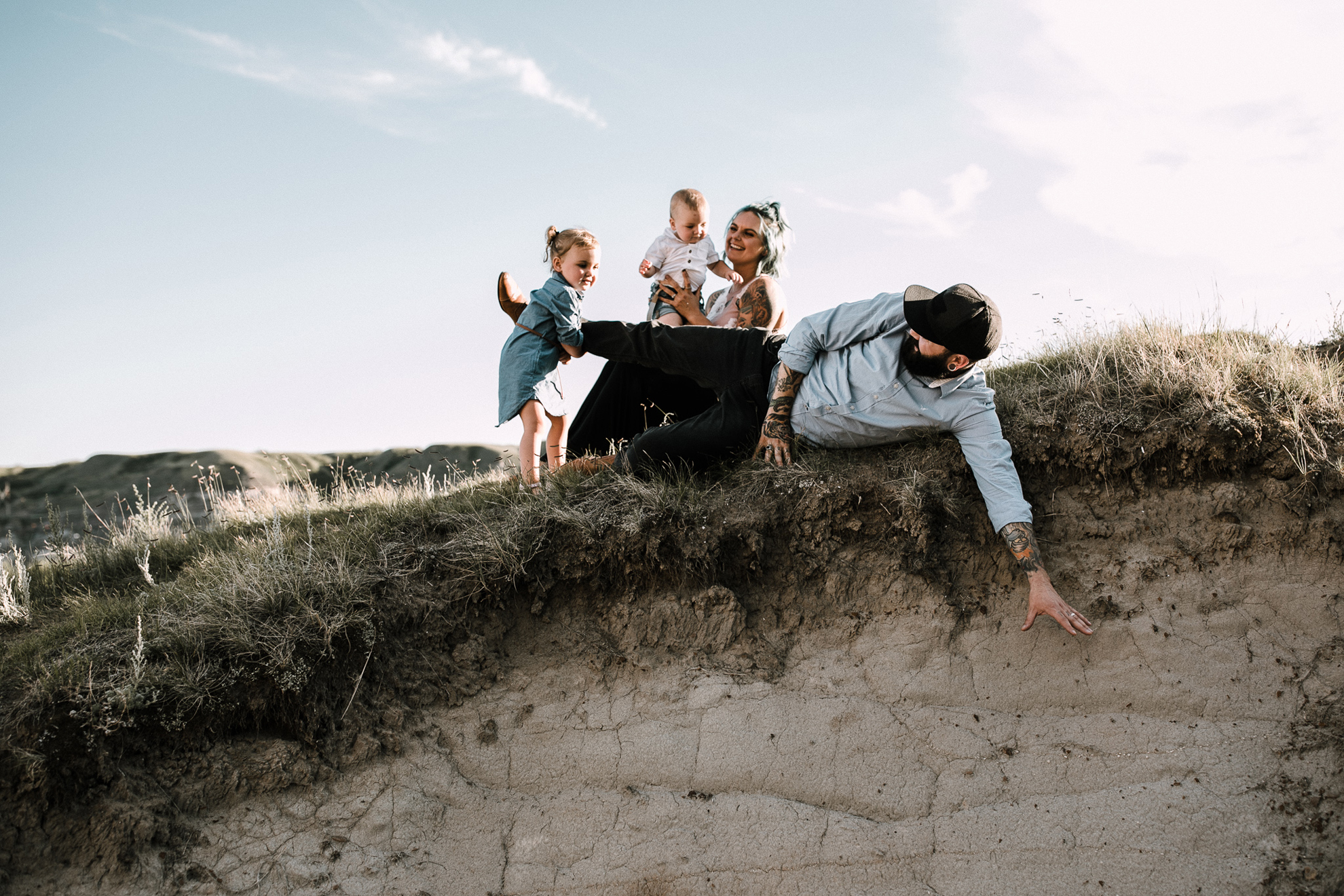 Now, enough about mom and dad….we need to talk about these kids because OMG, they are the cutest in the world. They try and tell us that Ruby has tantrums and can be a little devil but I, their Family Photographer, 100% DO NOT believe them lol. She is just the sweetest, quiet spoken, most polite little human. I just want to squish her little face all the time. Little Kai is the happiest, sweetest, momma loving babe (whose FIRST birthday happens to be today! Oct 18) So here’s a happy birthday post of your family connection session in Drumheller baby Kai!