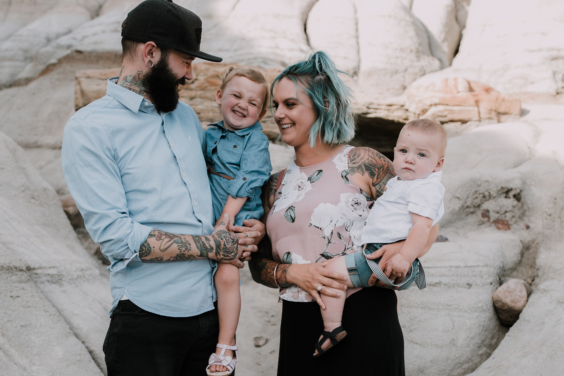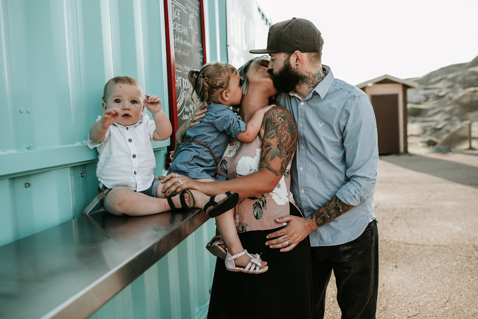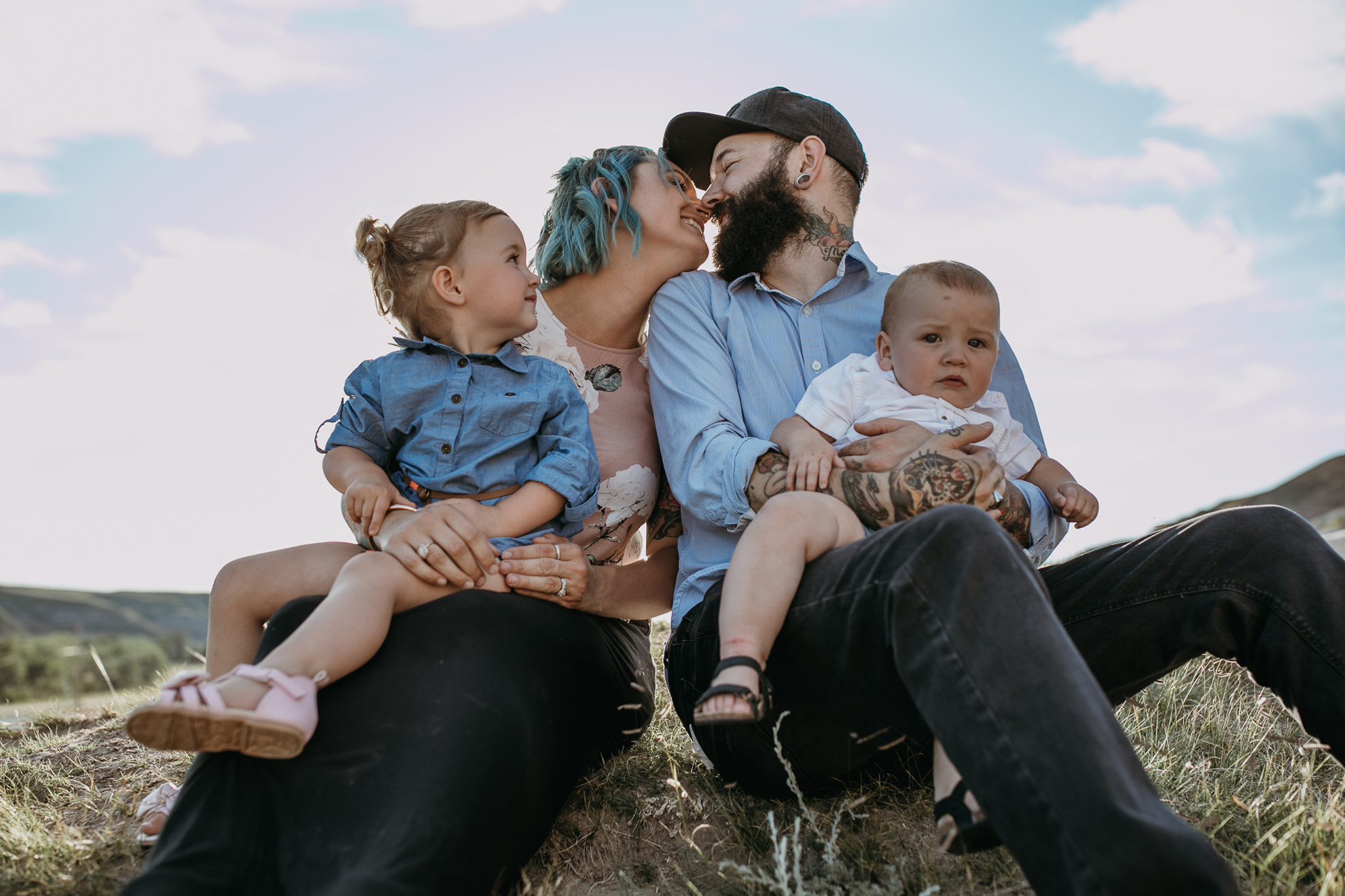 Now, enough about mom and dad….we need to talk about these kids because OMG, they are the cutest in the world. They try and tell us that Ruby has tantrums and can be a little devil but I, their Family Photographer, 100% DO NOT believe them lol. She is just the sweetest, quiet spoken, most polite little human. I just want to squish her little face all the time. Little Kai is the happiest, sweetest, momma loving babe (whose FIRST birthday happens to be today! Oct 18) So here’s a happy birthday post of your family connection session in Drumheller baby Kai!