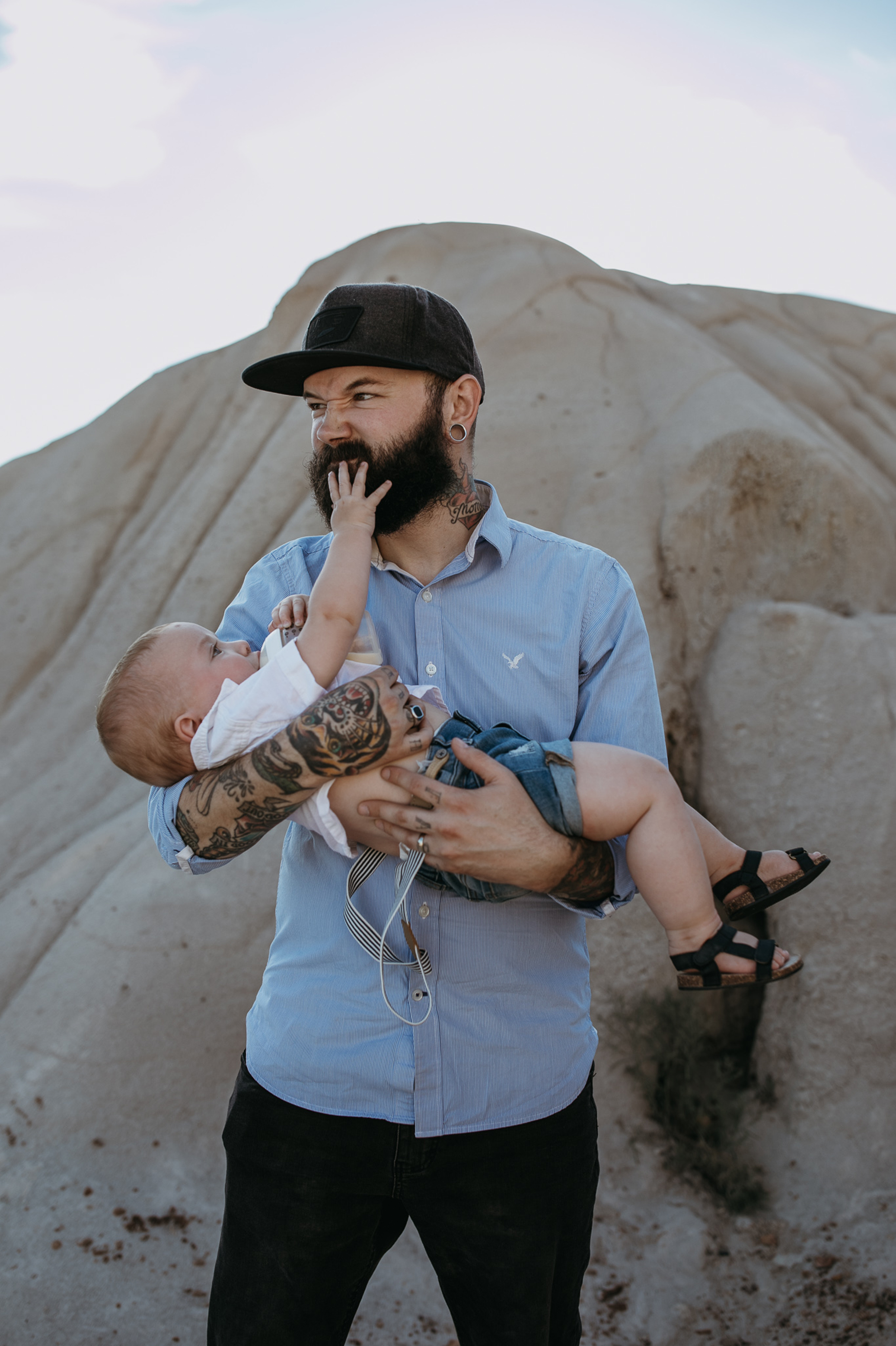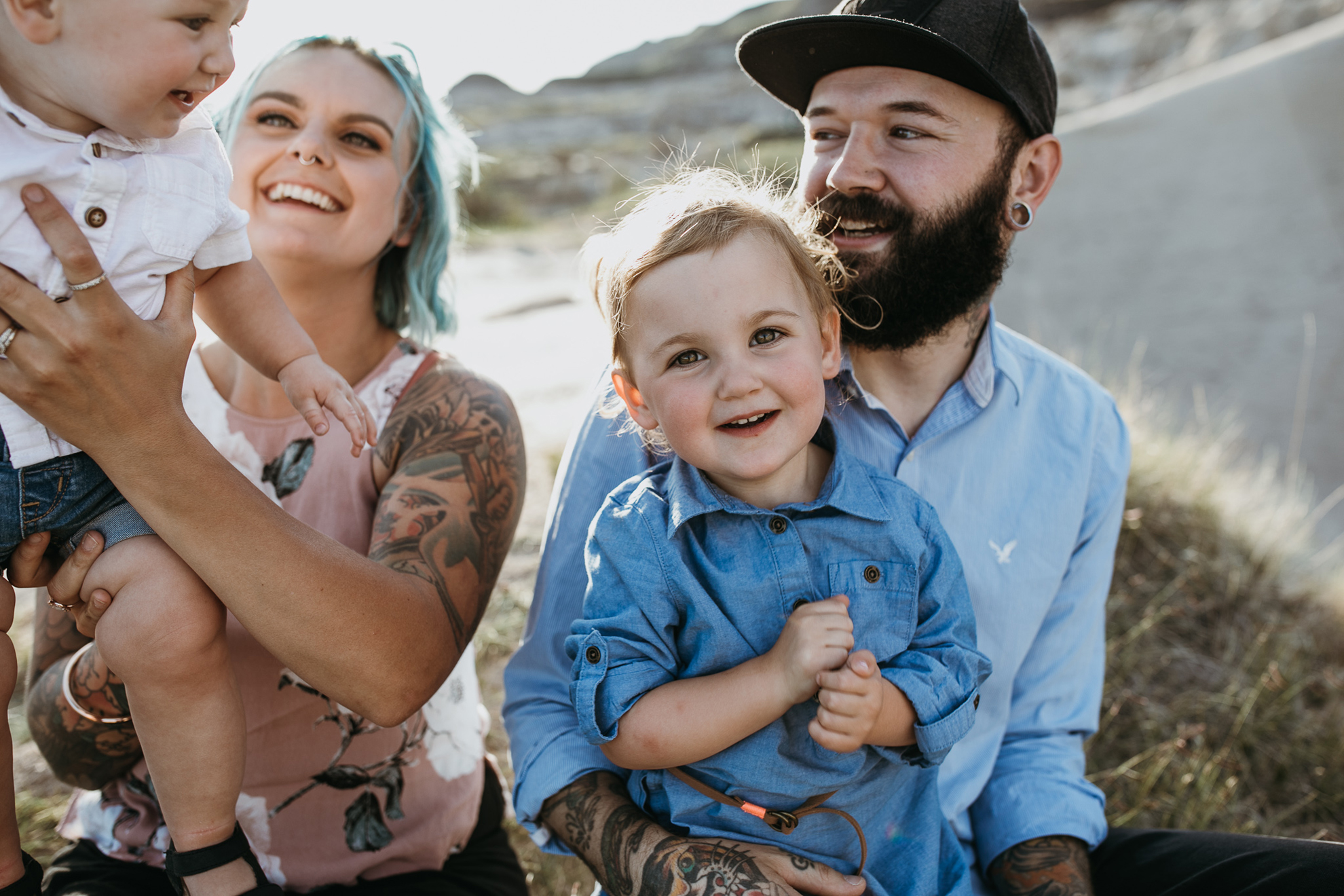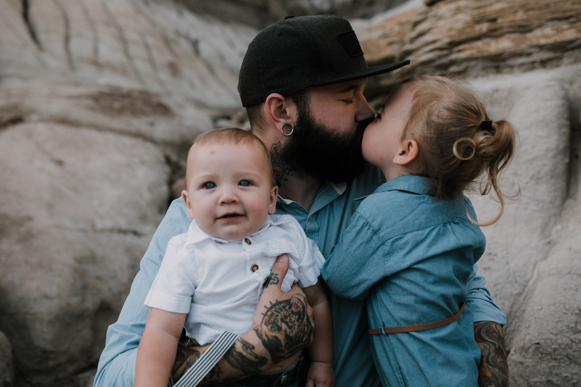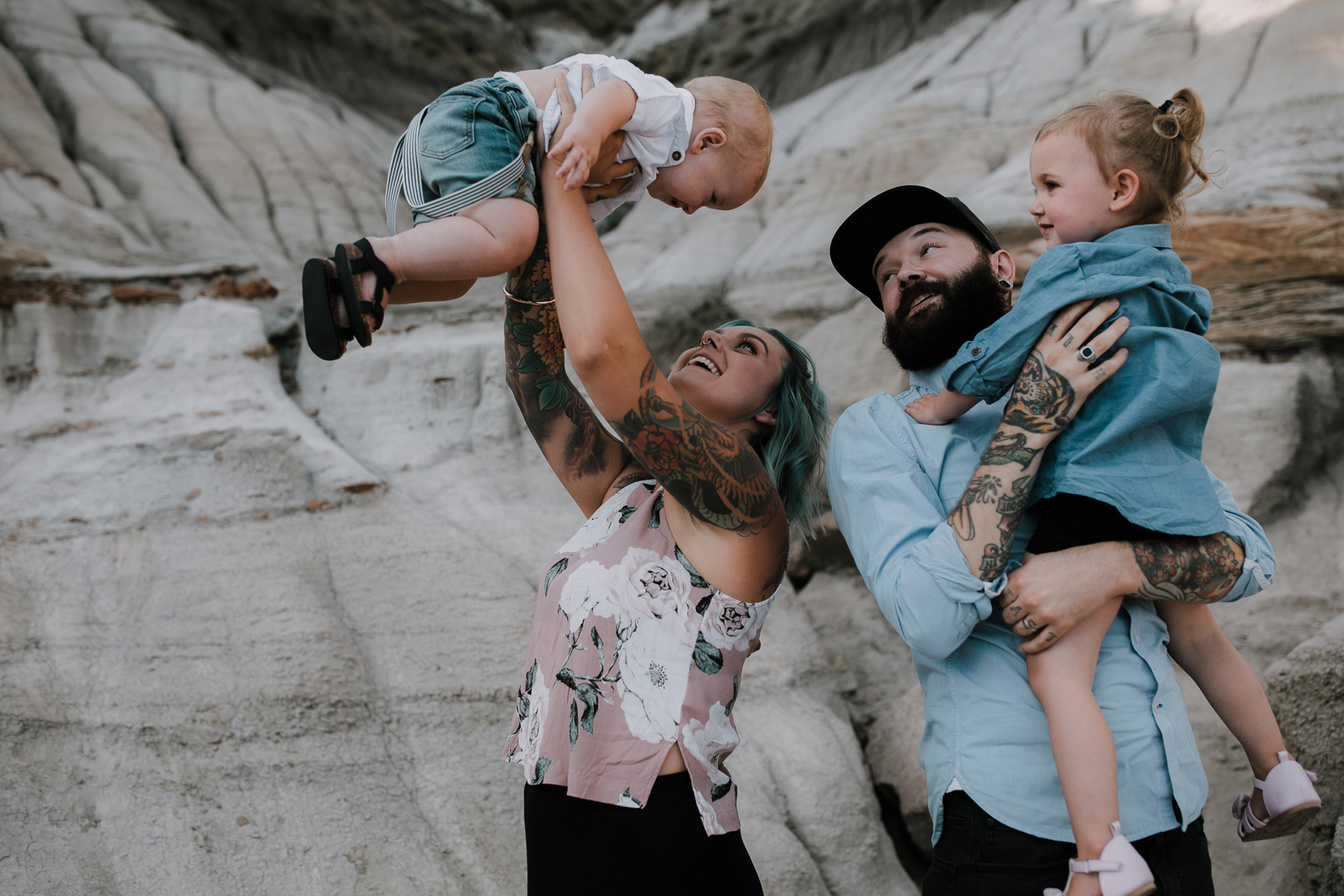 Now, enough about mom and dad….we need to talk about these kids because OMG, they are the cutest in the world. They try and tell us that Ruby has tantrums and can be a little devil but I, their Family Photographer, 100% DO NOT believe them lol. She is just the sweetest, quiet spoken, most polite little human. I just want to squish her little face all the time. Little Kai is the happiest, sweetest, momma loving babe (whose FIRST birthday happens to be today! Oct 18) So here’s a happy birthday post of your family connection session in Drumheller baby Kai!